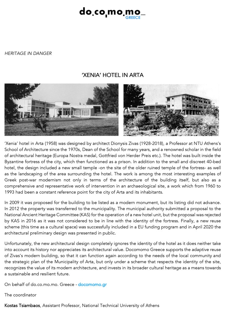 Το ελληνικό docomomo για το ‘Ξενία’ της Άρτας