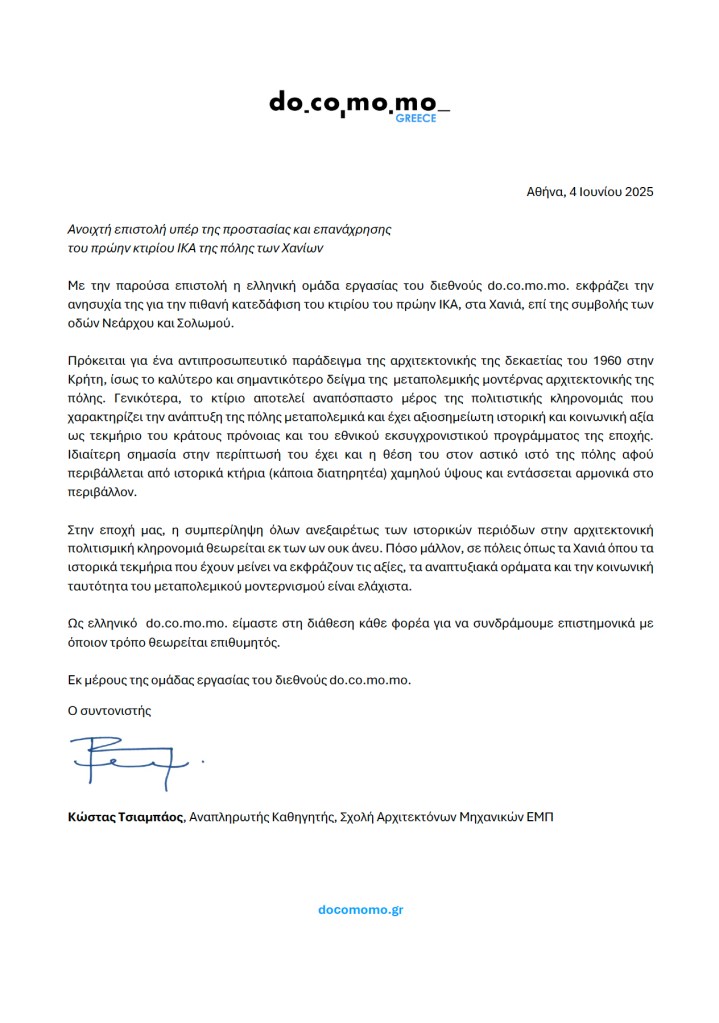 Ανοιχτή επιστολή υπέρ της διατήρησης του πρώην κτιρίου του ΙΚΑ στα Χανιά
