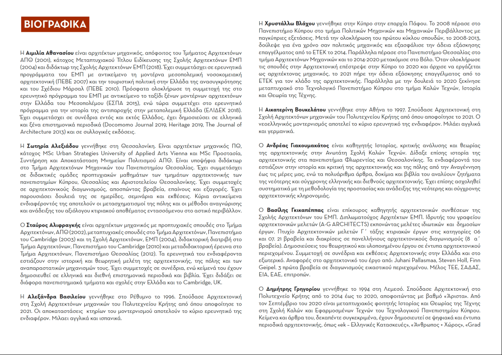 | Τασσοπούλου Μ. και Νοδαράκη Μ. | υπ. Διδ. ΕΜΠ – υπ. Διδ. ΕΜΠ | Η μεσογειακή ουτοπία της Jaqueline Tyrwhitt. Ένα μοντέρνο όραμα για την ελληνική ύπαιθρο | |