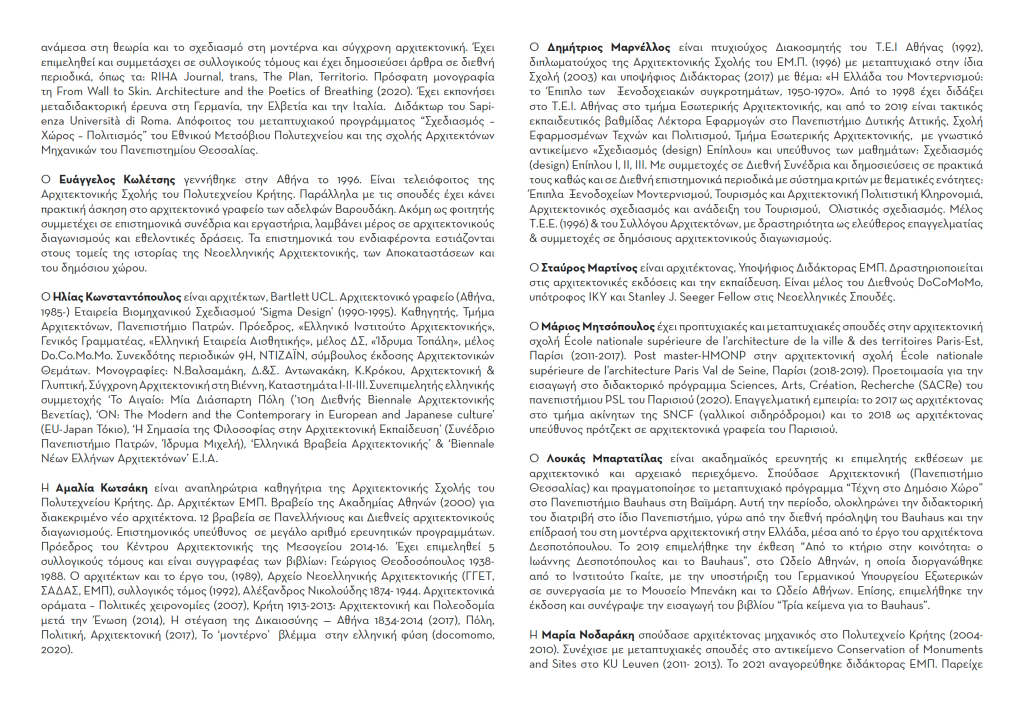 | Κάλφα Κ. και Παπαβασιλείου Μ. | Διδάκτωρ ΕΜΠ – υπ. Διδ. ΕΜΠ | Το άμεσο περίβλημα μέσα στη φύση: περί Ιάννη Ξενάκη και Αμοργού | |