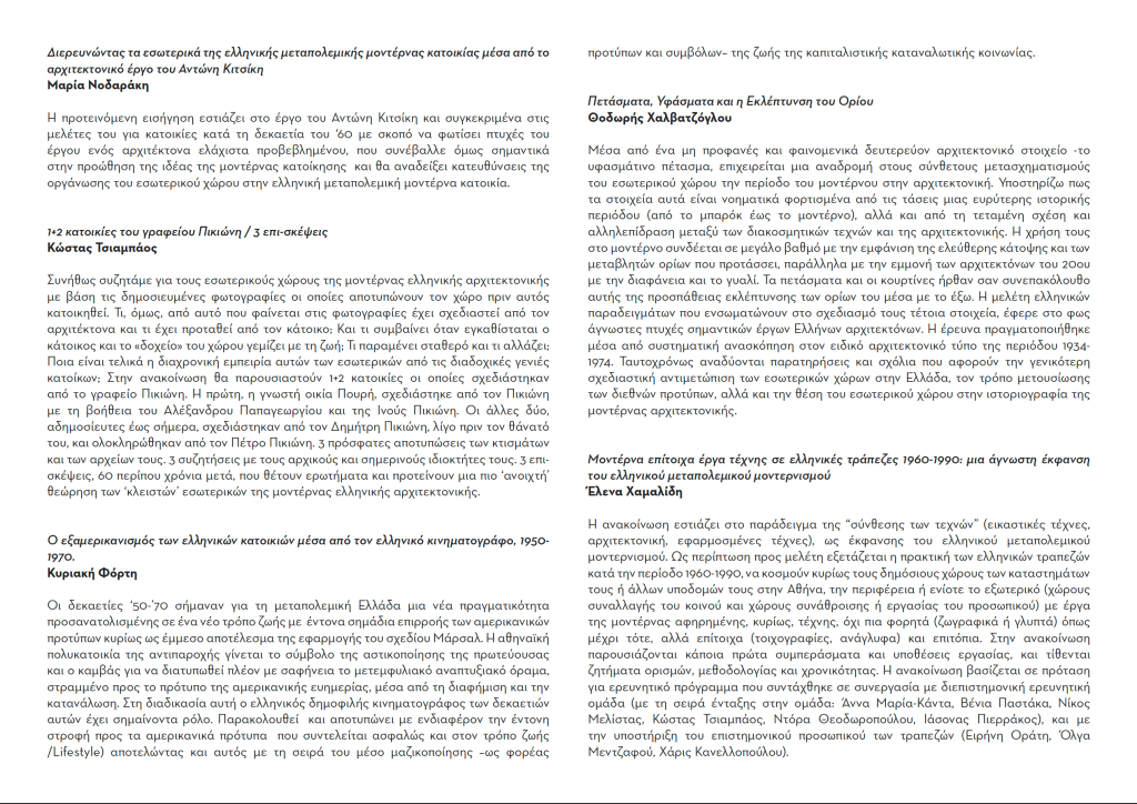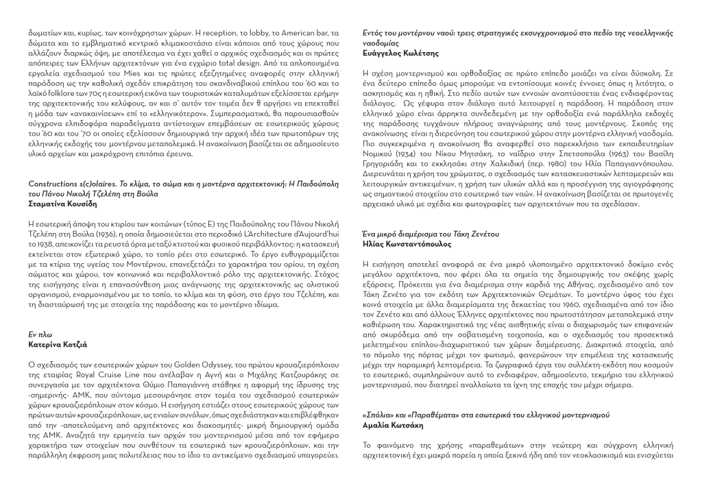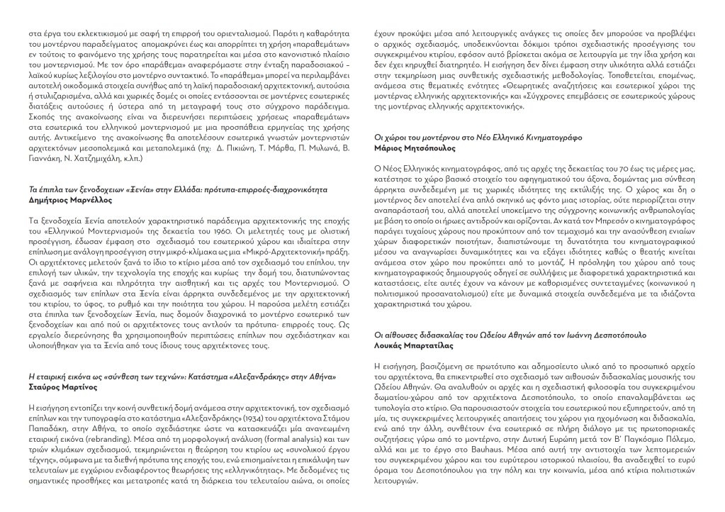 – Επίμετρο: Αρχιτεκτονική του Μοντέρνου Κινήματος στην Ελλάδα