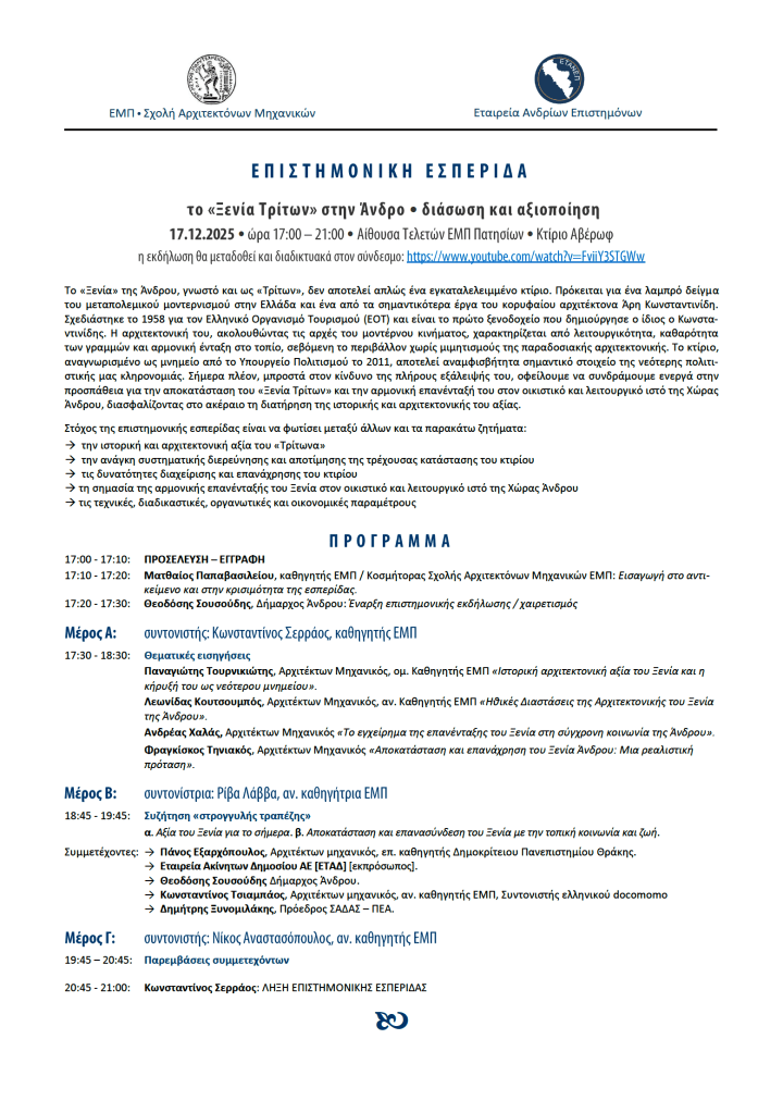 Νέα προθεσμία υποβολής αιτήσεων συμμετοχής επιστημονική συνάντηση με θέμα: “Η Μοντέρνα Αρχιτεκτονική στην Ελλάδα – Σύγχρονες Κατευθύνσεις” 31.08.2025